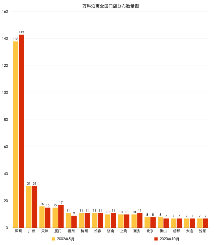 在此期间,泊寓租金收入达到10.5亿元。截止10月,其在全国布局城市达34个,但其门店数量排名前十五的城市两极分化明显,其中门店数量最多的城市为深圳,达143家,超过剩余九个城市门店数量总和。有相关机构5月发布的标杆企业监测数据显示,其深圳门店的收入占比也最高,达到42.9%,其次是广州,为22.4%。目前,泊寓仍重点发力广深租赁市场。从出租率来看,泊寓在重点8城的开业门店中,维持90%左右的出租率,整体出租情况较为稳定。