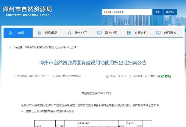 重磅!2023漳州市区首拍来了!4宗地!3.9日开拍!1873元/㎡起拍!